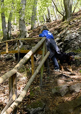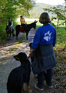 links: "Schwarze Wand" mit Hundeführerin. Mal wieder ein Suchbild: Wo bin ich?