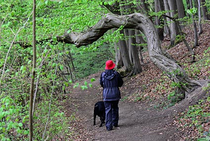 Wenn der ovale Laacher See in einem Einbruchkrater liegt - was muss man wohl tun, um aus dem Vulkan wieder heraus zu kommen? - Richtig, man muss an seinen Wänden hinauf steigen. Am Laacher See ist dieser Ringwulst durchschnittlich 125 m hoch ... Nun stand also der zweite heftige Anstieg an. Und so kletterten wir bergan ... und bergan ... und als wir dachten, wir hätten den Kraterrand erreicht, ging es nochmals bergan. Dieser zweite Aufstieg hatte es wirklich in sich.
