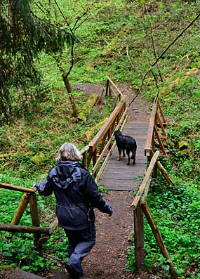 Es wurde urwaldromantisch: enge Pfade an Abhängen, hohe Trasswände, |