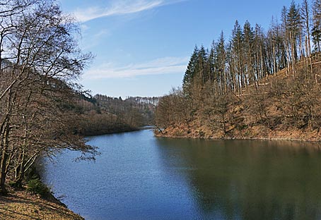 Die drei Arme der Aggertalsperre werden durch die Flüsse Agger, Genkel und Rengse gespeist.