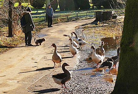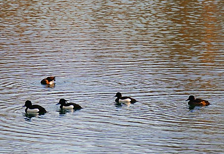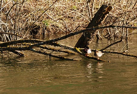 Reiherenten (Aythya fuligula) und Kanadagans (Branta canadensis)