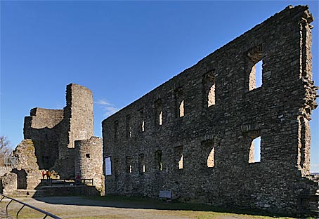 Die gut erhaltenen Reste der Fensterfront lassen erahnen, wie repräsentativ die Burg Windeck einmal gewesen sein muss.