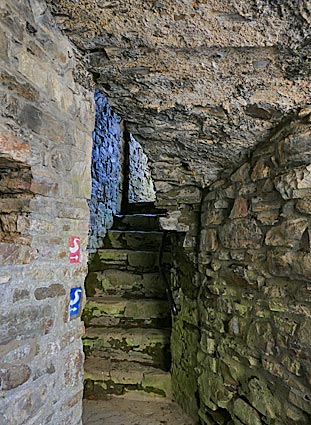 Steiler Aufstieg bis auf 128 m Höhe zur Schützhütte oberhalb von Dreisel