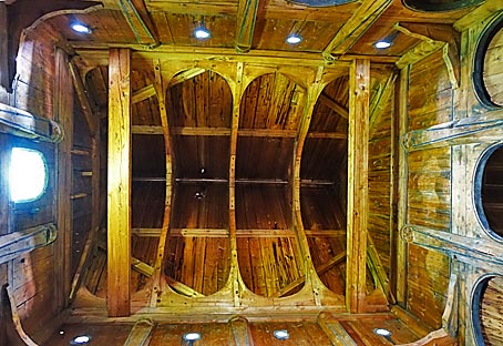 Von unten her gesehen, erinnert die Dachkonstruktion über dem Zentralraum