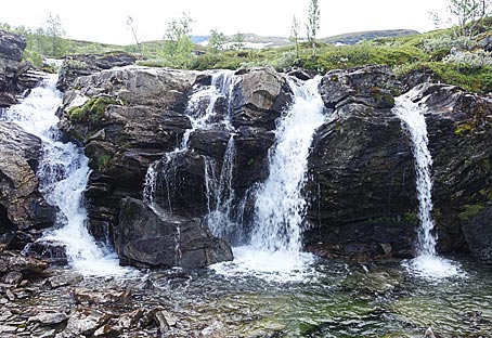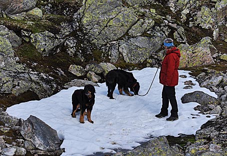 Bei einem Spaziergang durch die karge Fjellheide gab es Eis zum Schlecken für die Hunde mitten im Sommer.
