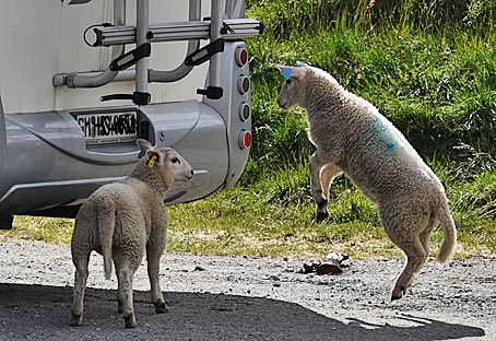 Auf freilaufende Schafe oder Ziegen trifft man in Norwegen immer wieder.