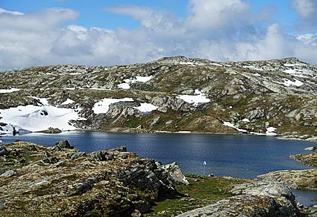 Von dort aus hat man einen fantastischen Blick auf den Fannaråken (2068 m) und die umliegenden Berge.