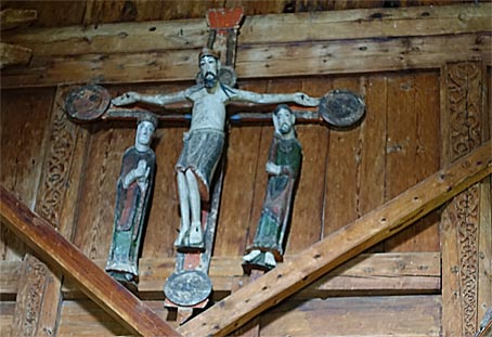 Die Stabkirche Borgund hat besonders prächtige, geschnitzte Drachenköpfe an den Dachtraufen. Die Drachenköpfe entspringen dem Wikingerkult. Man musste seinerzeit den Nordmännern erlauben, Relikte ihrer Kultur in den neuen Glauben zu retten, um sie zu christianisieren. |