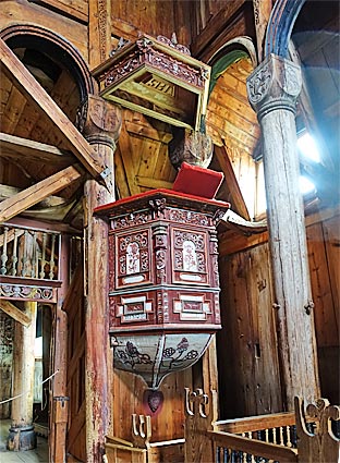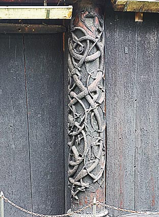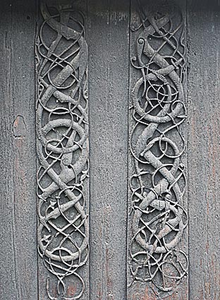 Charakteristisch für den "Urnes Stil" sind die phantastischen Schnitzereien, die mit größter Sorgfalt angefertigt sind.