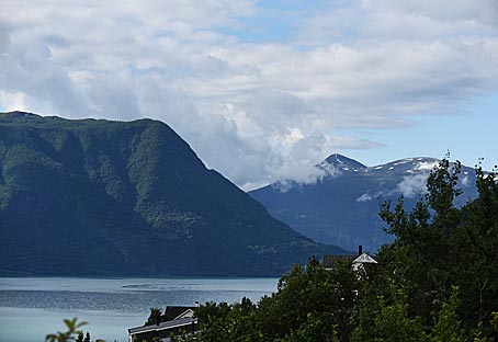 Morgens regnete es zwar nicht mehr, aber die Berge am Aurlandsfjord waren in Wolken gehüllt.