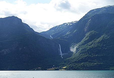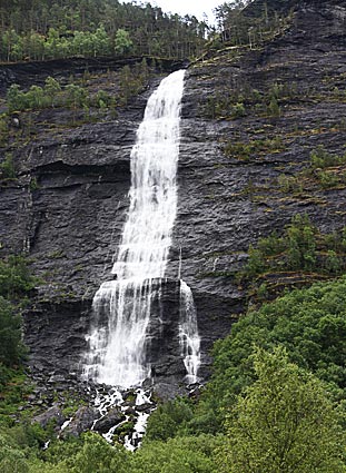 Der Wasserfall "Vassbakken" stürzt 180 m in die Tiefe. >