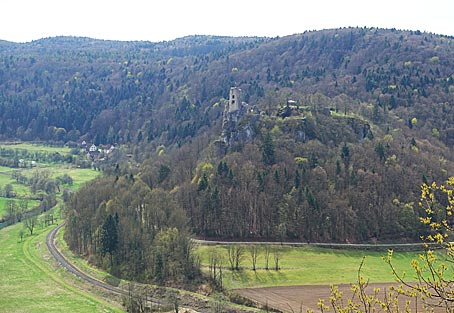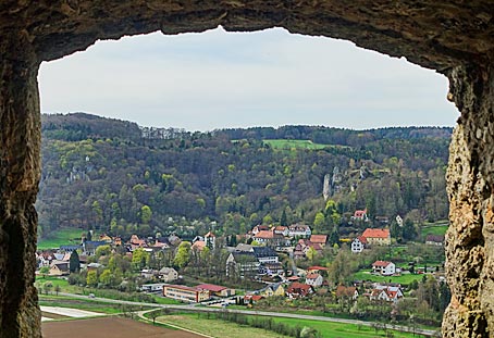Auf dem Weg zur Binghöhle hat man einen schönen Blick auf die Streitburg. |