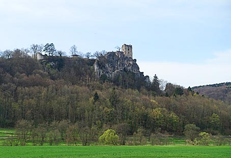 Blick aus dem Wiesenttal zur Burgruine Neideck — Backes am Wegesrand in Haag