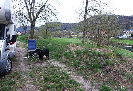 Übernachtet haben wir am Freibad (49.808277N, 11.225370E) neben der Wiesent mit schönem Blick zur beleuchteten Streitburg.