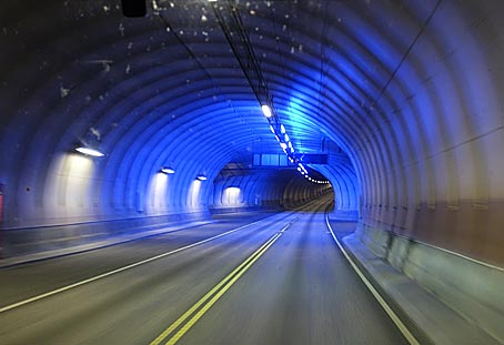 Kurz hinter dem Picknickplatz taucht die Straße vor Kristiansund im 5 km langen Atlanterhavstunnelen bis zu 250 m unter den Meeresspiegel ab.