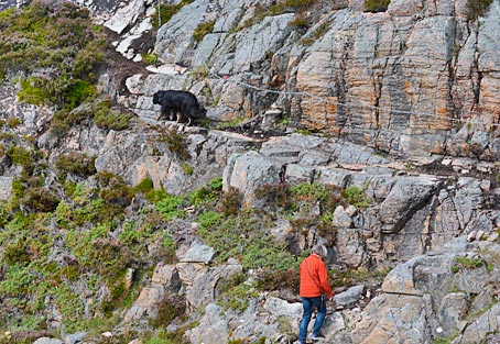 Picknickplatz Averøya Mittags stand eine Wanderung an. Chili brauchte Bewegung.