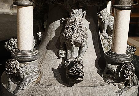 Das geschnitzte Flechtwerk mit seinen Schlangen und Drachen,
