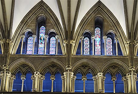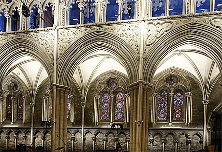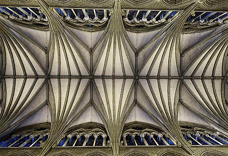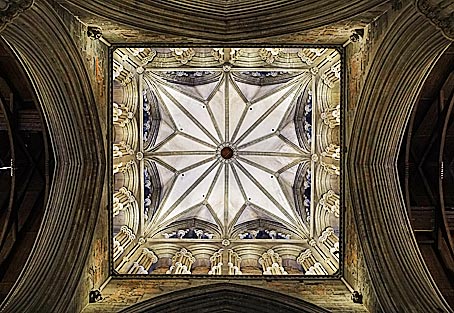 Man sollte auch immer mal einen Blick nach oben werfen: Blick in den Turm und zur Decke des Längsschiffs.