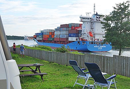 Genauso gerne machen wir einen Zwischenstopp zum Schiffe gucken am Nordostseekanal.