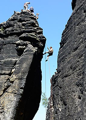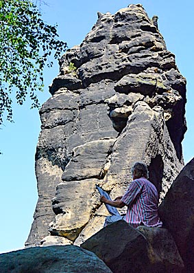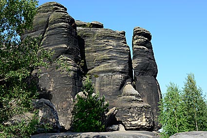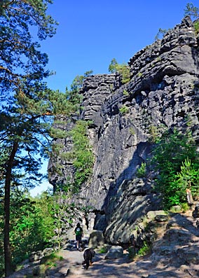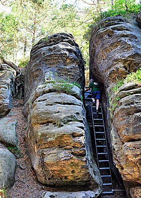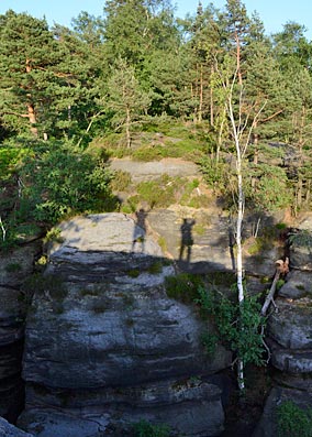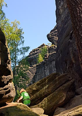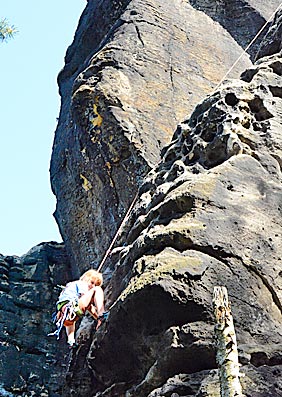 Gleich neben dem Normalaufstieg liegt die "Peterskirche" mit Kletterrouten im sächsischen Schwierigkeitsgrad Xa bis XIb