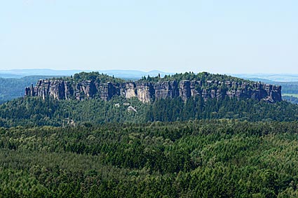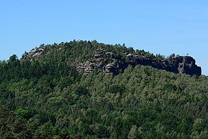 Der bewaldete Papststein ist mit seinen 451 m der höchste Tafelberg der Sächsischen Schweiz und hat den kürzesten Aufstieg.