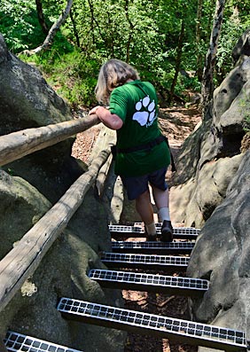 Der Aufstieg zum Gasthaus ist trotz der über 500 Stufen für Hunde problemlos.