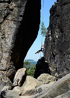 Und welches Kind kann zuhause wohl soo schön schaukeln wie beim Abseilen vom "Zwerg"?