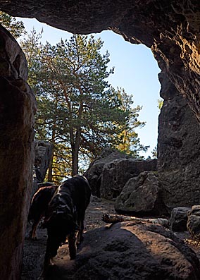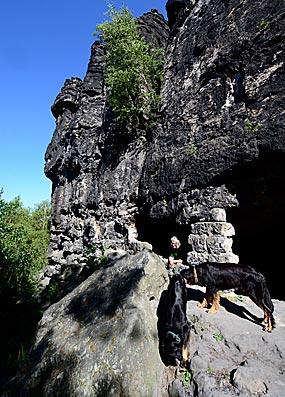Das Interessanteste am Kleinhennersdorfer Stein sind seine 3 Höhlen in der Südseite.