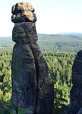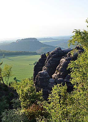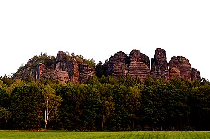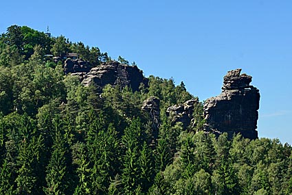32 frei stehende Klettergipfel stehen wie ein Kranz um den Pfaffenstein herum.