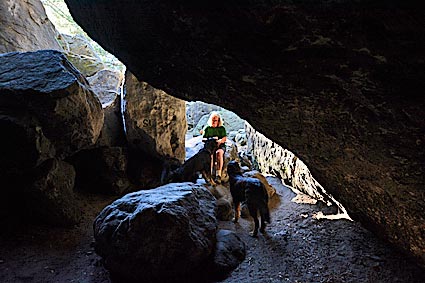 Mit Hunden sollte man den bequemen Normalaufstieg wählen, also nicht durch die Felsspalte.