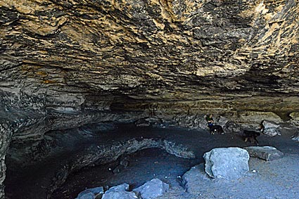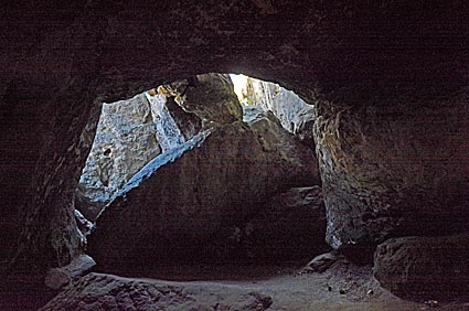 In der Höhle dahinter ist es stockfinster und man sollte eine Taschenlampe mitnehmen.