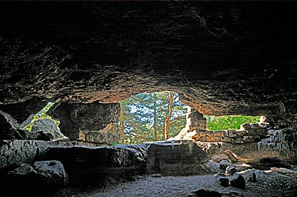 Die größte der 3 Höhlen, die Lichterhöhle im hinteren Felsen, ist eine Schichtfugenhöhle. |