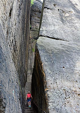 - allerdings durch die etwas bequemere, aber enge und dunkle Falkenschlucht.