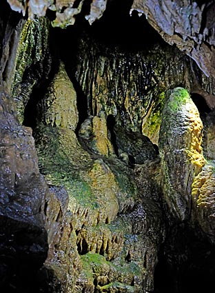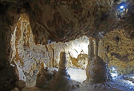 Die Höhle wird punktuell mit LED-Lampen erleuchtet. |