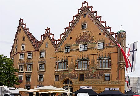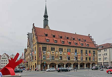 Das reich bemalte Rathaus von Ulm. |