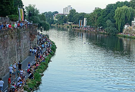war regelrecht belagert. Tausende Zuschauer bevölkerten den Promenadenweg vom Fischerviertel bis zur Friedrichsau