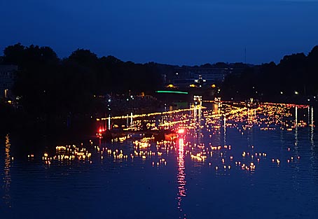 von den sogenannten Ulmer Schachteln auf die Donau gesetzt und lassen die Donau zu einem grandiosen Lichtermeer werden.
