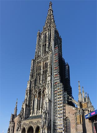 Das spätgotische Ulmer Münster hat mit 161,53 m den höchsten Kirchturm der Welt.