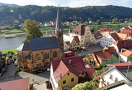 Durch den Wehlener Grund erreicht man dann bald wieder Wehlen. Von der Burgruine Wehlen hat man einen schönen Blick auf den Marktplatz.