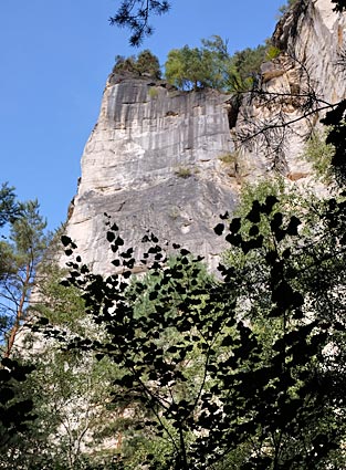 Die weißen Wände zwischen Wehlen und Rathen sind ehemalige Steinbrüche, in denen von 1388 - 1910 Sandstein abgebaut wurde.