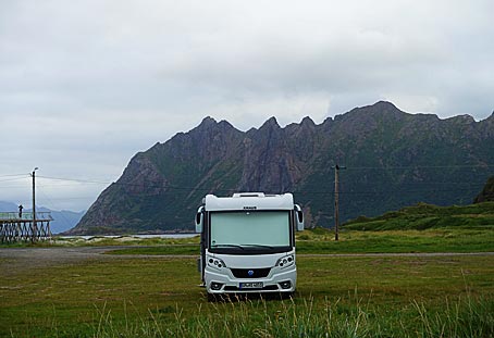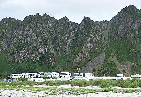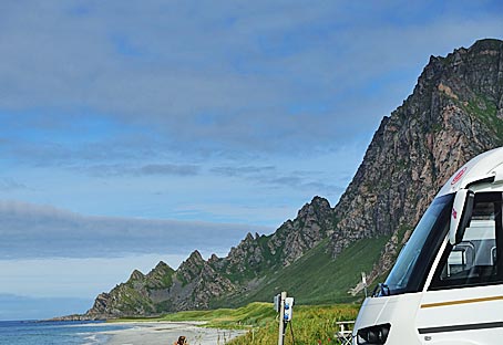 Am Strand von Bleik (69.2756, 15.9637) hatten wir einen erhöhten Stellplatz wie auf einem 'Balkon'