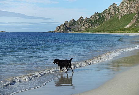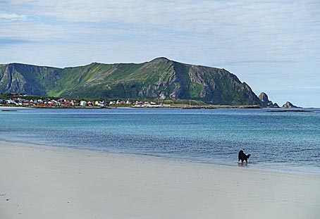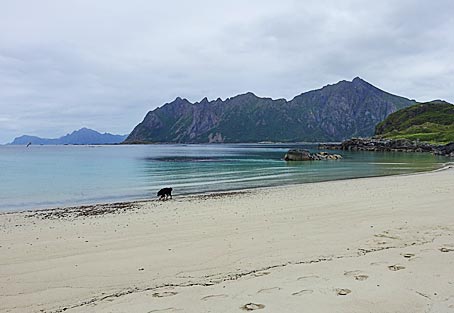 Bleik hat den längsten weißen Sandstrand Norwegens. Da konnte ich mit Chili eine richtig lange Wanderung über den einsamen Strand machen.