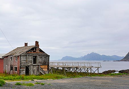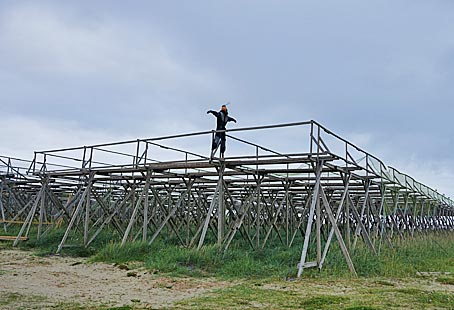 In den Wintermonaten wird auf den Lofoten der Dorsch gefangen und in den Gestellen im kalten Wind zum Trocknen aufgehängt.