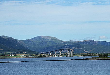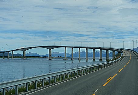 Die schön geschwungene Brücke bei Stokmarknes verbindet die Inseln Hadseløya und Langøya miteinander.