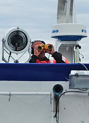 < Immer wieder suchte der Schiffer mit viel Geduld das Wasser ab. |