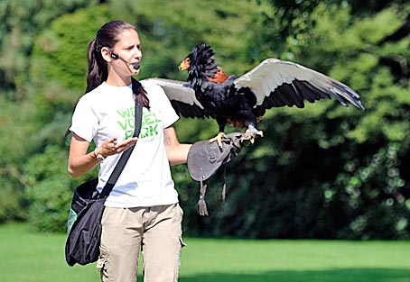 Da es im Vogelpark keine Berge gibt, starteten die großen Vögel ihren Gleitflug von einer Arbeitsbühne aus,