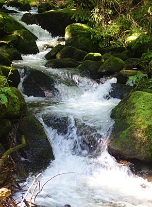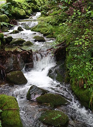 Mit hoher Geschwindigkeit schießt das Wasser durch die Engstelle neben dem Edelfrauengrab. |