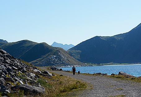 Vormittags haben wir eine 7 km lange, einfache Wanderung um den Veggen zum Haukland Beach gemacht.