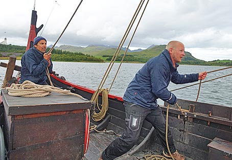 Es war recht windig und die Bootsleute hatten alle Hände voll zu tunl