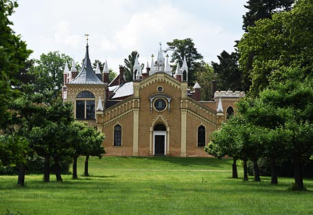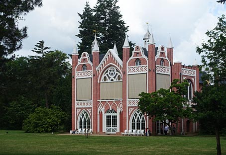 Vorder- und Rückseite des Gotischen Hauses (neogotischer Stil) in Schochs Garten